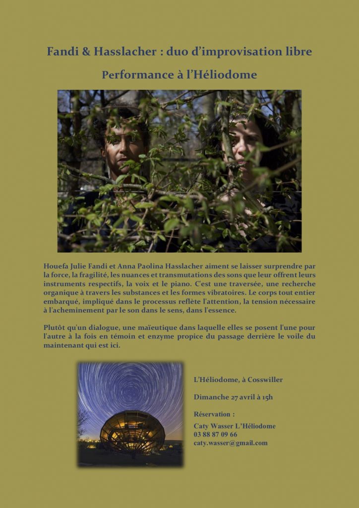 Voice and prepared piano. Concert at Héliodome. Cosswiller, France Sunday 27 April 2025